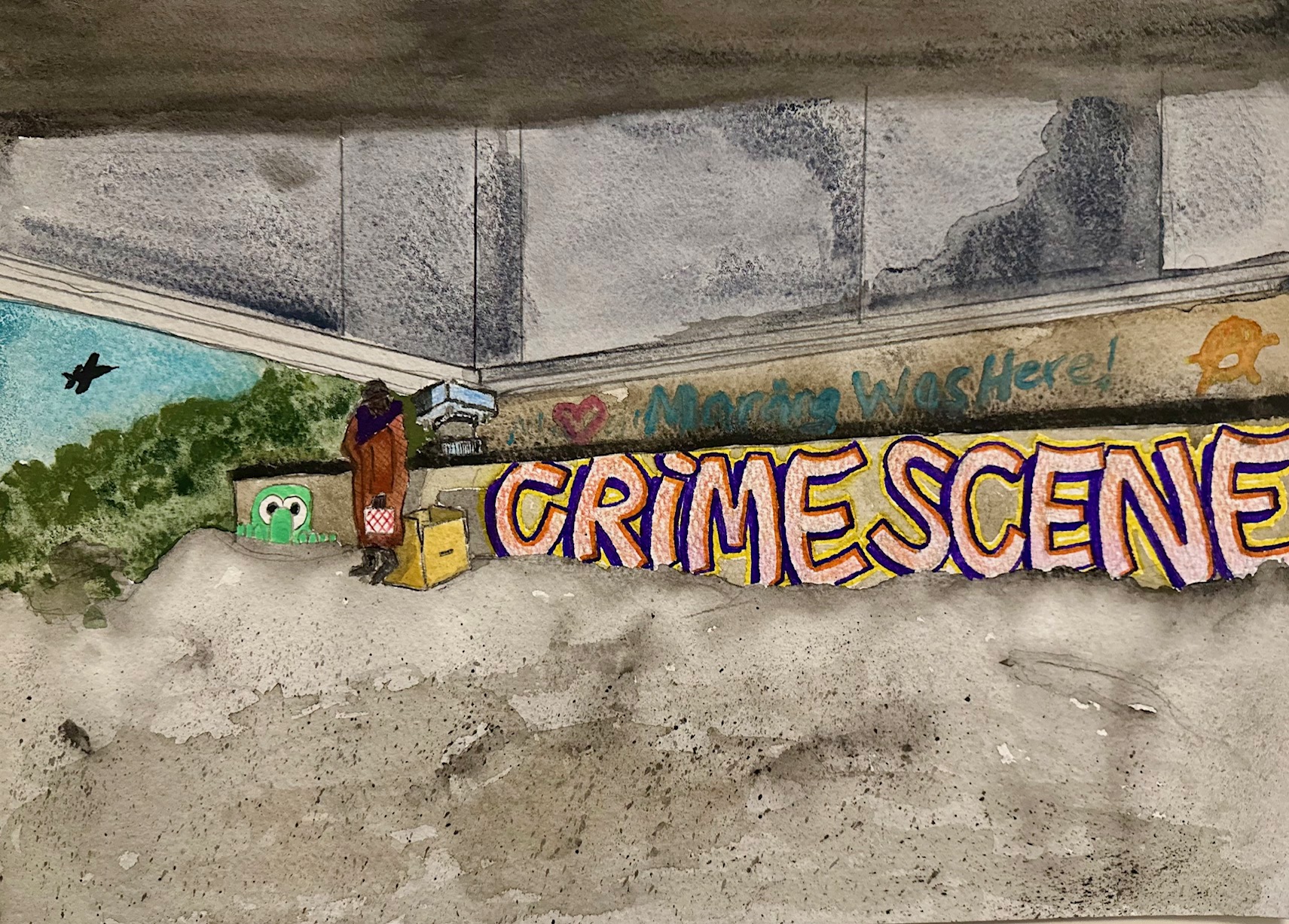 Akvarell, tusch, grafitpenna på fint akvarellpapper med struktur