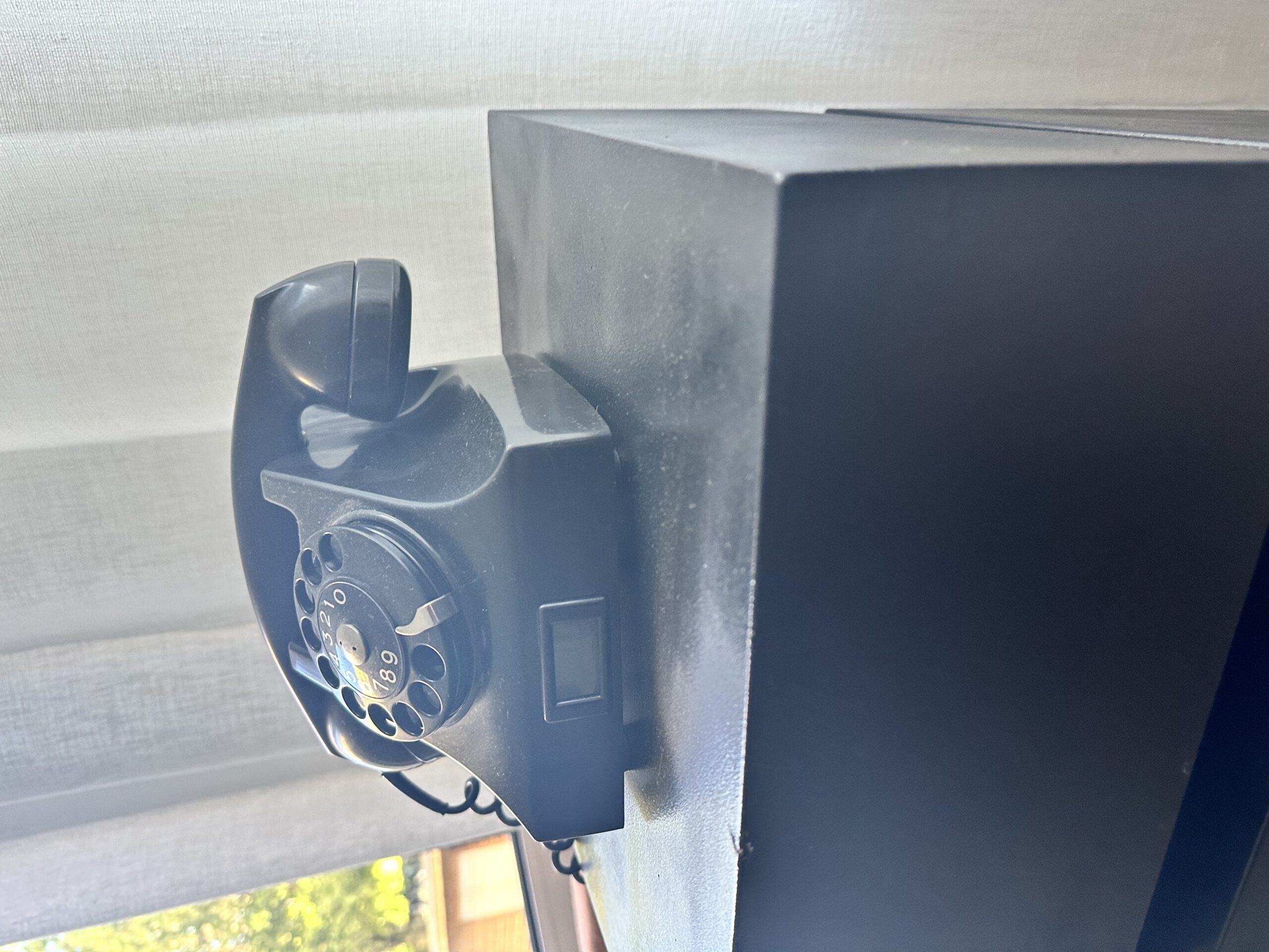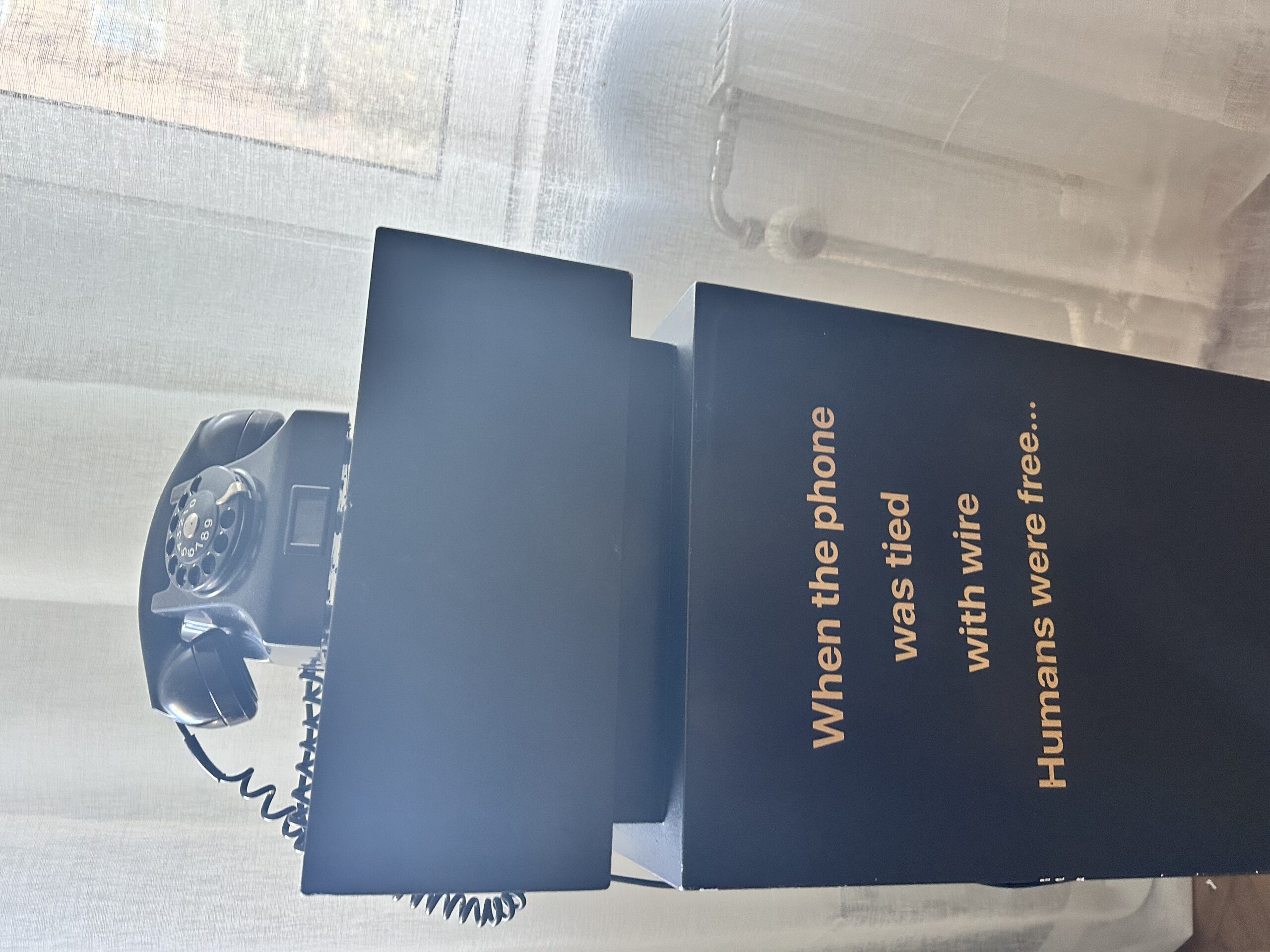 Verket fås med telefonen på bilden samt en extra Cobra telefon så man kan byta efter smak. Telefonen är kopplad i ett jack på sidan av skulpturen.